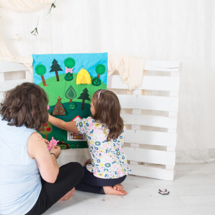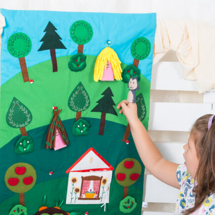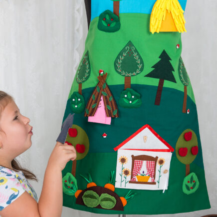 A mesekötény nem más, mint a falvédő egy változata, ami lehetőséget ad együtt játszásra és előadásra is.